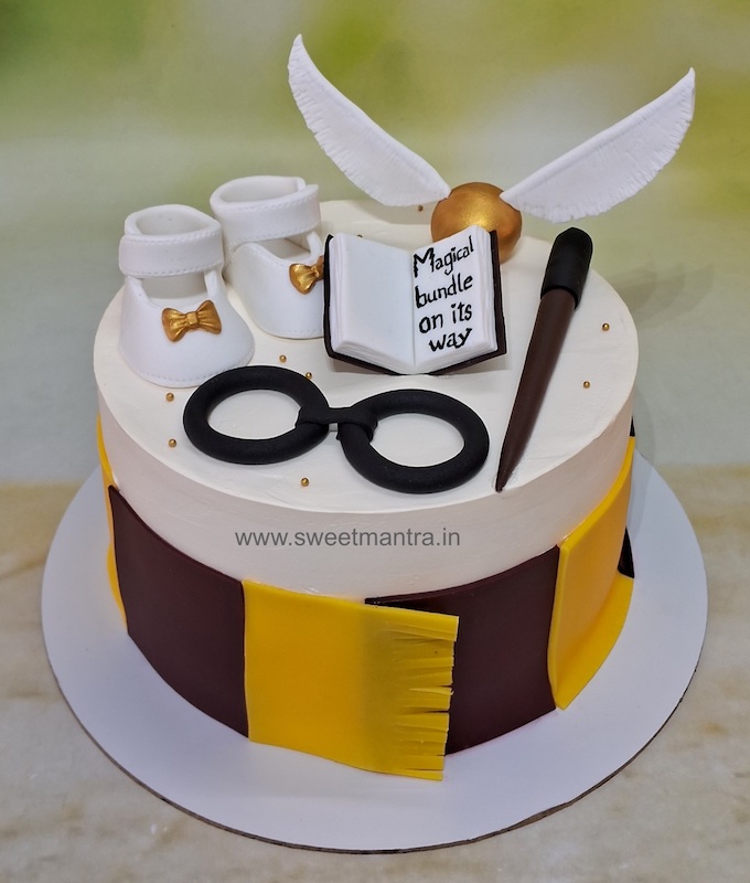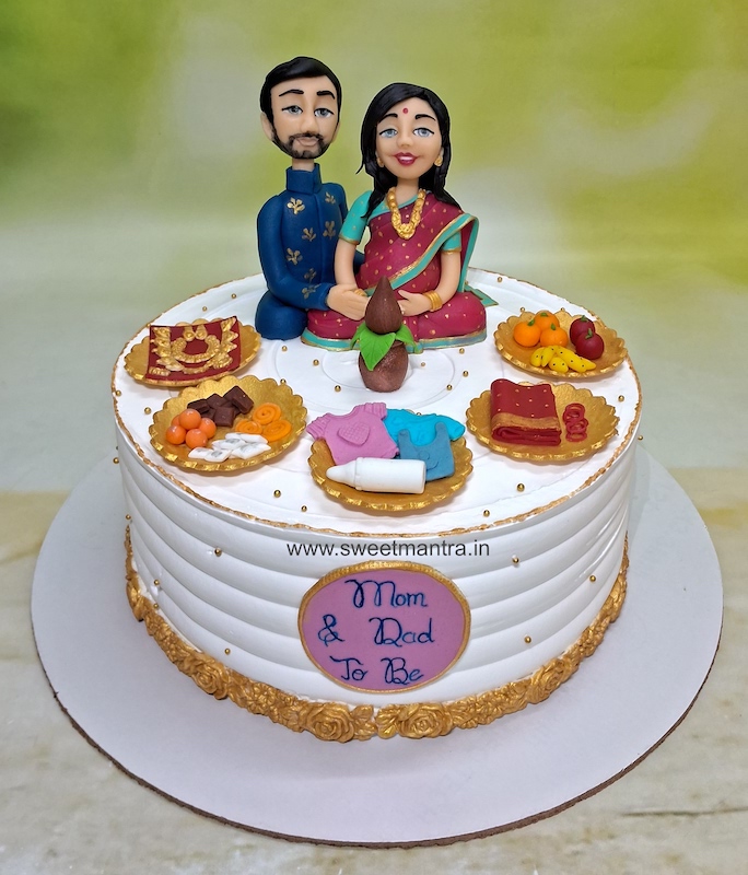 - Fine detailing sets us apart from the others. Self-taught Cake Artist Seema has been honing her craft for years to make adorable 3D fondant figures of pregnant lady, food items, baby accessories that are the highlight of our Traditional Baby Shower 2 tier cake designs. You can also preserve these figures as a souvenir for at least a year