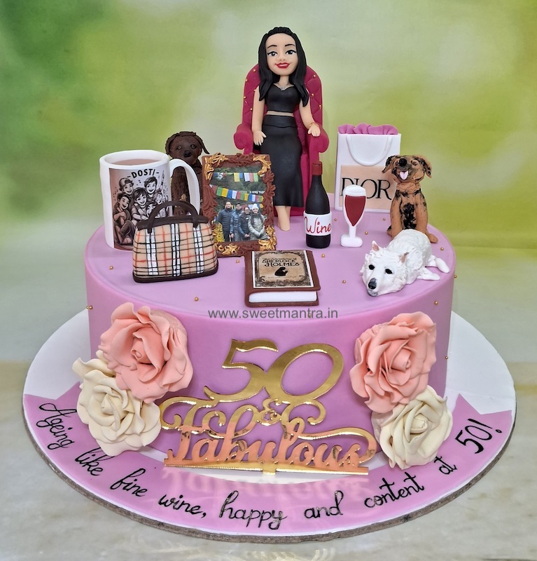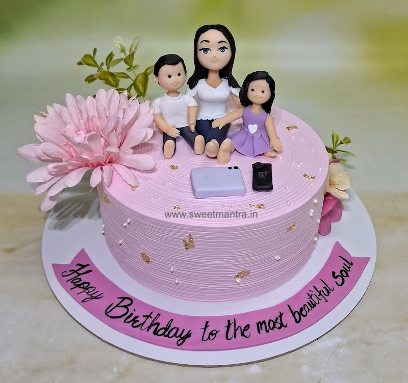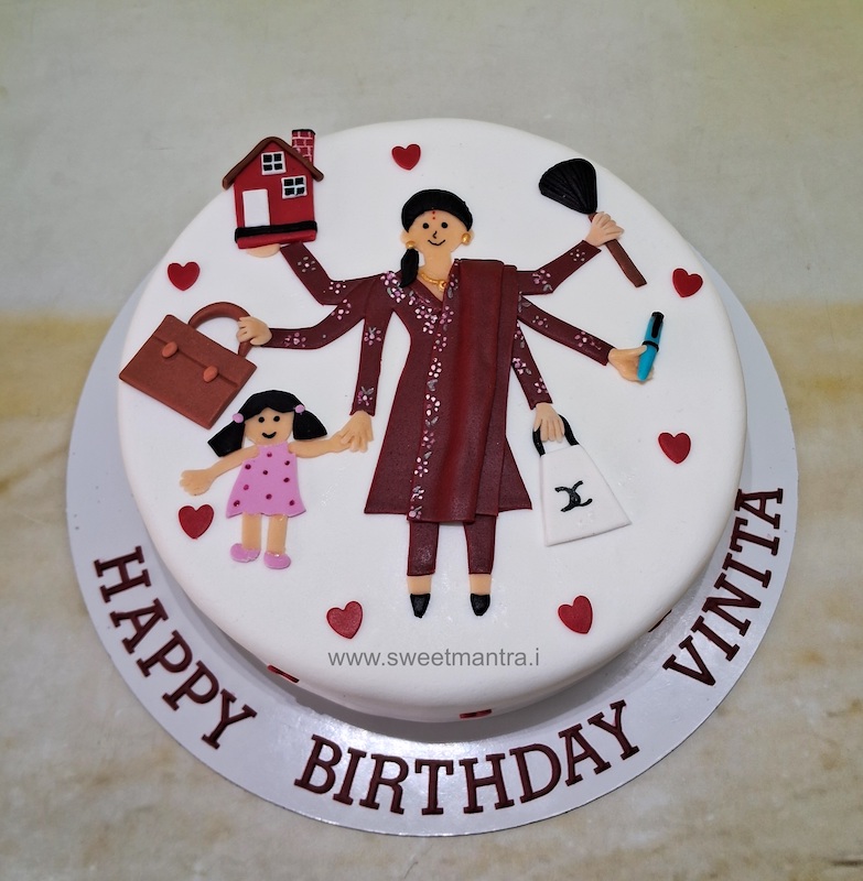 - Fine detailing sets us apart from the others. Self-taught Cake Artist Seema has been honing her craft for years to make adorable 3D fondant figures of lady in different avatars like Supermom, Travel girl, Housewife that are the highlight of our personalised cake designs for wife birthday. You can also preserve these figures as a souvenir for at least a year
