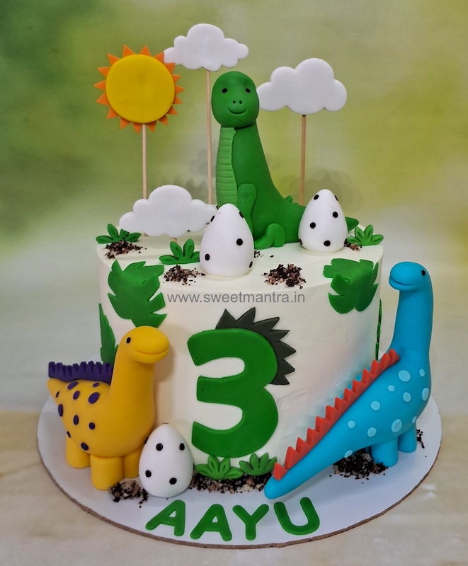 - Fine detailing sets us apart from the others. Self-taught Cake Artist Seema has been honing her craft for years to make adorable 3D fondant figures of Dinosaurs, hatched eggs that are the highlight of our Dino tier cake designs. You can also preserve these figures as a souvenir for at least a year