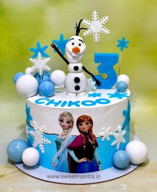 - Fine detailing sets us apart from the others. Self-taught Cake Artist Seema has been honing her craft for years to make adorable 3D figurines of Princess Elsa, Anna, Kristoff, Sven, Olaf that are the highlight of our Frozen theme cakes and Olaf 2 tier cakes. You can also preserve these figures as a souvenir for at least a year